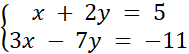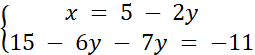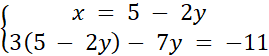 Rozwiąż podany układ równań metodą podstawienia, aby obliczyć wartości x i y.