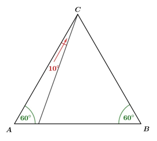 W tym zadaniu musisz wyznaczyć miary kątów trójkąta, powstałego przez rozcięcie trójkąta równobocznego na dwa mniejsze trójkąty.