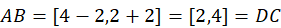 Oblicz wektor AB, który jest taki sam jak wektor DC i na jego podstawie znajdź współrzędne punktu D.