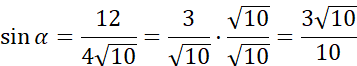 Sinusem kąta α nazywamy stosunek długości przyprostokątnej leżącej naprzeciw kąta α do długości przeciwprostokątnej.