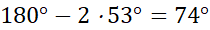 Przekątna dzieli prostokąt na cztery trójkąty równoramienne. Jeśli tworzy z bokiem kąt o mierze 53° to drugi kąt przy tym samym boku jest mu równy, a kąt, pod którym się przecinają przekątne jest równy