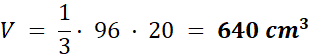 Wiedząc, że prostokąt o krawędziach 12 cm i 8 cm to podstawa ostrosłupa o wysokości 20 cm, podaj objętość bryły.