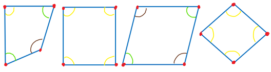 Mając wiedzę o czworokątach uzupełnij rysunki według instrukcji.