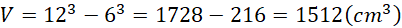 Oblicz pole całkowite. Zauważ, że takie wycięcie sześcianu z figury nie zmieni jej pola. Oblicz objętość jako różnicę objętości sześcianów.