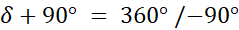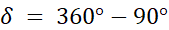 Kąt δ ma 270º i razem z kątem 90º tworzą kąt pełny 360º.