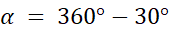 Kąt α ma 330º i razem z kątem 30º tworzą kąt pełny 360º.