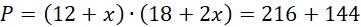 W tym zadaniu musisz obliczyć x, wiedząc że plac zabaw ma kształt prostokąta o wymiarach 12 m x 18 m, szerokość placu zwiększono o x m, a długość o 2x m i powierzchnia placu wzrosła o 144 m².