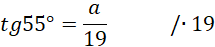 W tym zadaniu przedstawiony na rysunku obok budynek rzuca cień długości 19 m w momencie, gdy promienie słoneczne tworzą z powierzchnią ziemi kąt