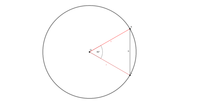 Poprowadź odcinki łączące środek okręgu z punktami A i B. Zauważ, że utworzony w ten sposób trójkąt, jest trójkątem równobocznym, a zatem miara kąta utworzonego między punktami A i B wynosi 60°. Skorzystaj ze wzoru na długość łuku.