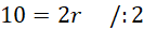 Korzystając ze wzoru na długość średnicy, oblicz długość promienia.