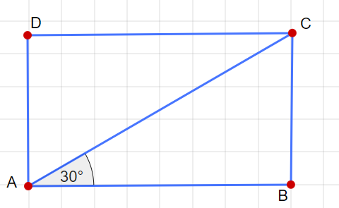 Prostokąt to czworokąt, którego wszystkie kąty są równe 90°. Boki prostokąta, które nie mają wspólnego wierzchołka, są równej długości i są względem siebie równoległe. Aby narysować opisany prostokąt, najpierw narysuj odcinek długości 4 cm, czyli 8 kratek. Następnie odmierz kąt o mierze 30° od tego odcinka i narysuj odcinek tak długi, aby znalazł się dokładnie nad drugim końcem pierwszego odcinki i połącz je kolejnym odcinkiem. Następnie z tego miejsca narysuj odcinek o długości 4 cm równoległy do pierwszego odcinka i poprowadź z jego końca odcinek do wierzchołka, przy którym powstał kąt 30°.