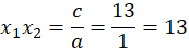 A. Dla k = 13 iloczyn pierwiastków tego równania jest równy 13.