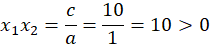 C. Dla k = 10 pierwiastki tego równania są ujemne.