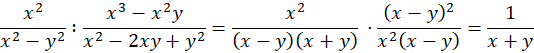 Zamień dzielenie na mnożenie przez odwrotność i uprość wyrażenie. Podstaw liczby pod x i y.
