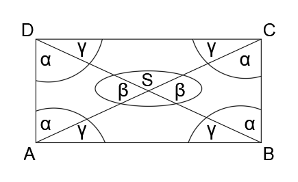 Wypisz pary trójkątów przystających, które powstały w wyniku przecięcia przekątnych prostokąta.