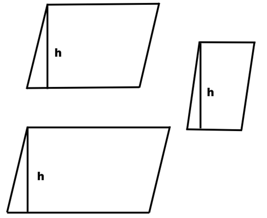 Wykonaj rysunek trzech różnych równoległoboków, które mają takie same wysokości.
