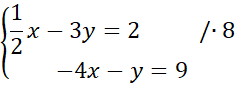 Całe pierwsze równanie pomnóż przez 8, aby współczynniki znajdujące się przy