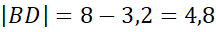 a następnie długości odcinków na jakie dwusieczna podzieliła bok AB.