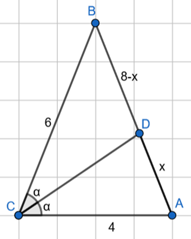 Skorzystaj z tego, że dwusieczna kąta w trójkącie dzieli przeciwległy bok na odcinki proporcjonalne do pozostałych boków trójkąta. Zapisz to za pomocą równania i wyznacz z niego wartość