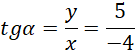 Najpierw odczytaj współrzędne punktu P, a następnie oblicz tangens kąta korzystając ze wzoru:
