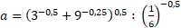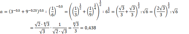 Zamień wszystkie podstawy na trójki i po kolei wykonuj działania na wykładnikach. Na koniec pozbądź się niewymierności z mianownika ułamka i przy pomocy kalkulatora oblicz wynik i zakoduj odpowiedź.