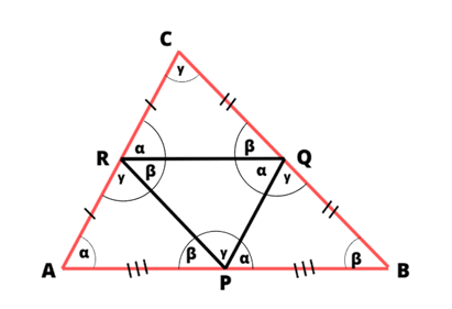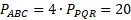 są identyczne. Pole trójkąta ABC jest równe czterem polom PQR.