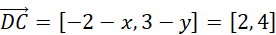 . Ponieważ czworokąt ABCD jest równoległobokiem, to oba te wektory mają jednakowe współrzędne. Przyrównaj je i wyznacz współrzędne punktu D.