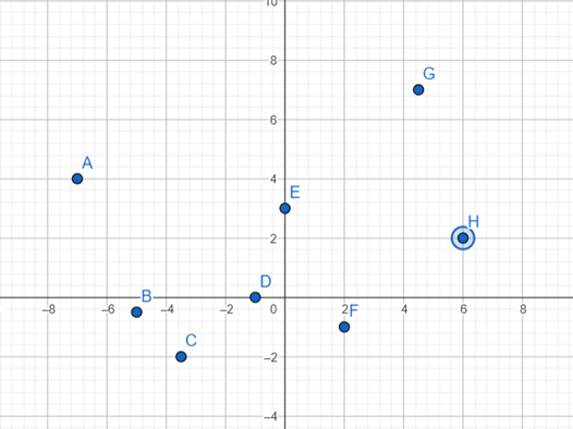 Należy zaznaczyć punkty określone w tabeli na układzie współrzędnych i na jego podstawie określić prawdziwość zdań.