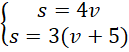 Wyznacz prędkość obu rowerzystów, jeśli wyruszyli w tę samą trasę: pierwszy o 10:00, drugi godzinę później, przy czym drugi jechał ze średnią prędkością o 5 km/h większą niż pierwszy. O godzinie 14:00 drugi rowerzysta dogonił pierwszego.