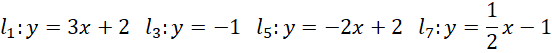Narysuj w jednym układzie współrzędnych wszystkie proste, które przecinają oś OY w punkcie (0,2), a w drugim wszystkie, które przecinają oś OY w punkcie (0,-1).