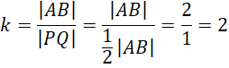 Skoro trójkąty ABO i POQ są podobne, to można obliczyć skalę ich podobieństwa: