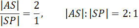 Na podstawie powyżej obliczonej skali można obliczyć w jakim stosunku punkt S dzieli środkowe AP i CR.