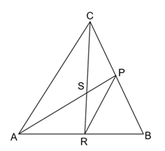 Odcinki AP i CR są środkowymi trójkąta, więc punkty P i R są środkami boków BC i AB. W trójkącie odcinek łączący środki dwóch boków jest zawsze równoległy do trzeciego. Więc: