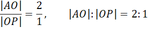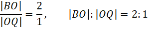 Na podstawie powyżej obliczonej skali można obliczyć w jakim stosunku punkt O dzieli środkowe AP i BQ.