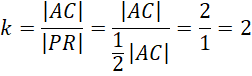 Skoro trójkąty ASC i PSR są podobne, to można obliczyć skalę ich podobieństwa:
