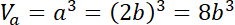 Ustal, ile razy objętość pierwszego sześcianu jest większa od objętości drugiego sześcianu, jeśli krawędź pierwszego sześcianu jest dwa razy dłuższa od krawędzi drugiego sześcianu.