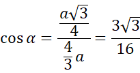 Wyznacz cosinus kąta, który płaszczyzna przekroju tworzy z dolną podstawą tego graniastosłupa, jeśli graniastosłup prawidłowy trójkątny o krawędzi podstawy