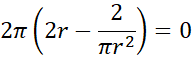 Wyznacz powierzchnię etykiety, jeśli wymiary puszki w kształcie walca o objętości 2 dm3 zaprojektowano tak, aby do jej wykonania zużyć jak najmniej blachy, a na całą powierzchnię boczną puszki naklejono etykietę.