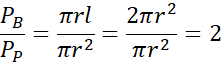 Udowodnij, że jeżeli przekrój osiowy stożka jest trójkątem równobocznym, to pole powierzchni bocznej tego stożka jest dwa razy większe od pola jego podstawy.