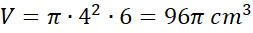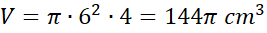 Wyznacz różnicę objętości brył powstałych przez obrót prostokąta o bokach 4 cm i 6 cm wokół krótszego i wokół dłuższego boku: