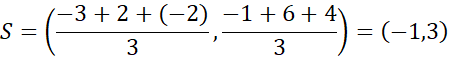 Skorzystaj ze wzoru na środek ciężkości trójkąta o wierzchołkach A, B i C: