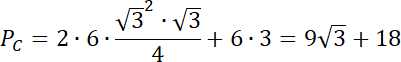 , a sześciokąt foremny składa się z 6 trójkątów równobocznych. Na tej podstawie oblicz objętość i pole całkowite graniastosłupa.