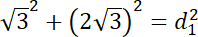 Następnie skorzystaj z twierdzenia Pitagorasa, aby obliczyć długość przekątnych bryły. Zauważ, że dłuższa przekątna, podwojona krawędź podstawy i wysokość bryły oraz krótsza przekątna, podwojona wysokość trójkąta z podstawy i wysokość bryły tworzą trójkąt prostokątne.