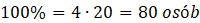 Zauważ, że skoro 4 uczniów zaznaczyło odpowiedź stanowiącą 5%, to 20 razy więcej stanowi 100%, czyli ilość wszystkich ankietowanych.