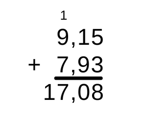 Dodaj do siebie wagi obu skrzynek z jabłkami, by dostać, ile jabłek zerwał tata. Wykonując dodawanie pisemne, najpierw należy w słupku dodać do siebie cyfry ze słupka znajdującego się najbardziej z prawej. Jeśli otrzymana liczba jest dwucyfrowa, należy cyfrę jedności takiego wyniku zapisać pod słupkiem cyfr jedności, a cyfrę dziesiątek z wyniku trzeba przenieść dalej poprzez dopisanie tej cyfry nad kolejnym w lewo słupkiem. Przy dodawaniu kolejnego słupka, do wyniku należy dodać przeniesioną cyfrę ze słupka wcześniej. W taki sam sposób należy dodawać każdy kolejny słupek, zaczynając od lewej i idąc do prawej. Jeśli w ostatnim słupku wyjdzie liczba większa od 10, to już nie wolno przenosić dalej, bo nie ma kolejnego słupka, lecz należy napisać całą liczbę. Pamiętaj, że przecinek wyniku będzie znajdował się pod przecinkami jego składników.