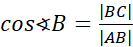 Cosinusem kąta ostrego α nazywamy stosunek długości przyprostokątnej, która przylega do tego kąta do długości przeciwprostokątnej. Oznaczamy jako cosα.