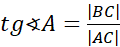 Tangensem kąta ostrego α nazywamy stosunek długości przyprostokątnej, która leży naprzeciwko tego kąta do długości przyprostokątnej przylegającej do niego. Oznaczamy jako tgα.