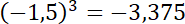 Podnieś podaną liczbę do 3 potęgi, czyli pomnóż przez siebie trzy razy liczbę -1,5.