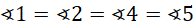 Pary kątów: 1 i 4, 2 i 5, 3 i 6 są wierzchołkowe, czyli są sobie równe. Wiedząc, że