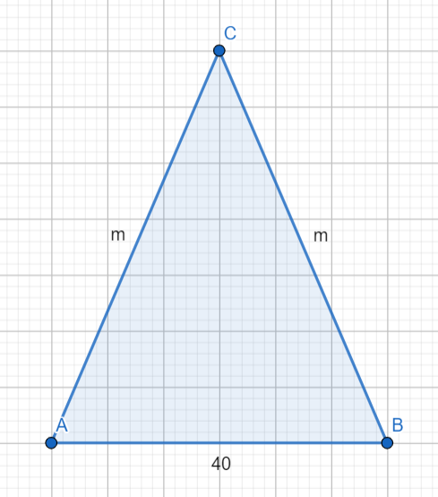 Jakie wartości ramienia m może przyjmować trójkąt równoramienny o podstawie długości 40?